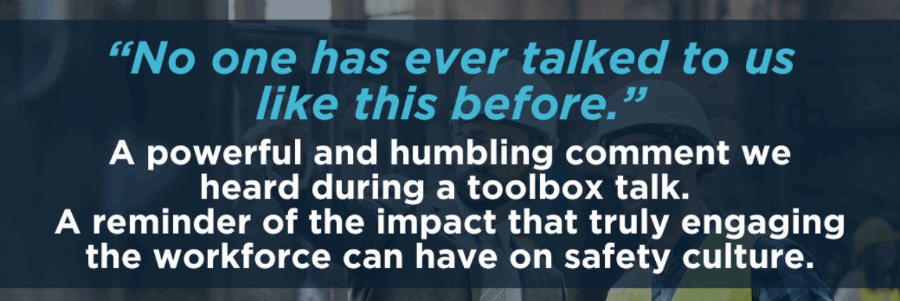 Hearing a comment like “No one has ever talked to us like this before” was both impactful and humbling. It underscored the importance of truly engaging the workforce in safety conversations.